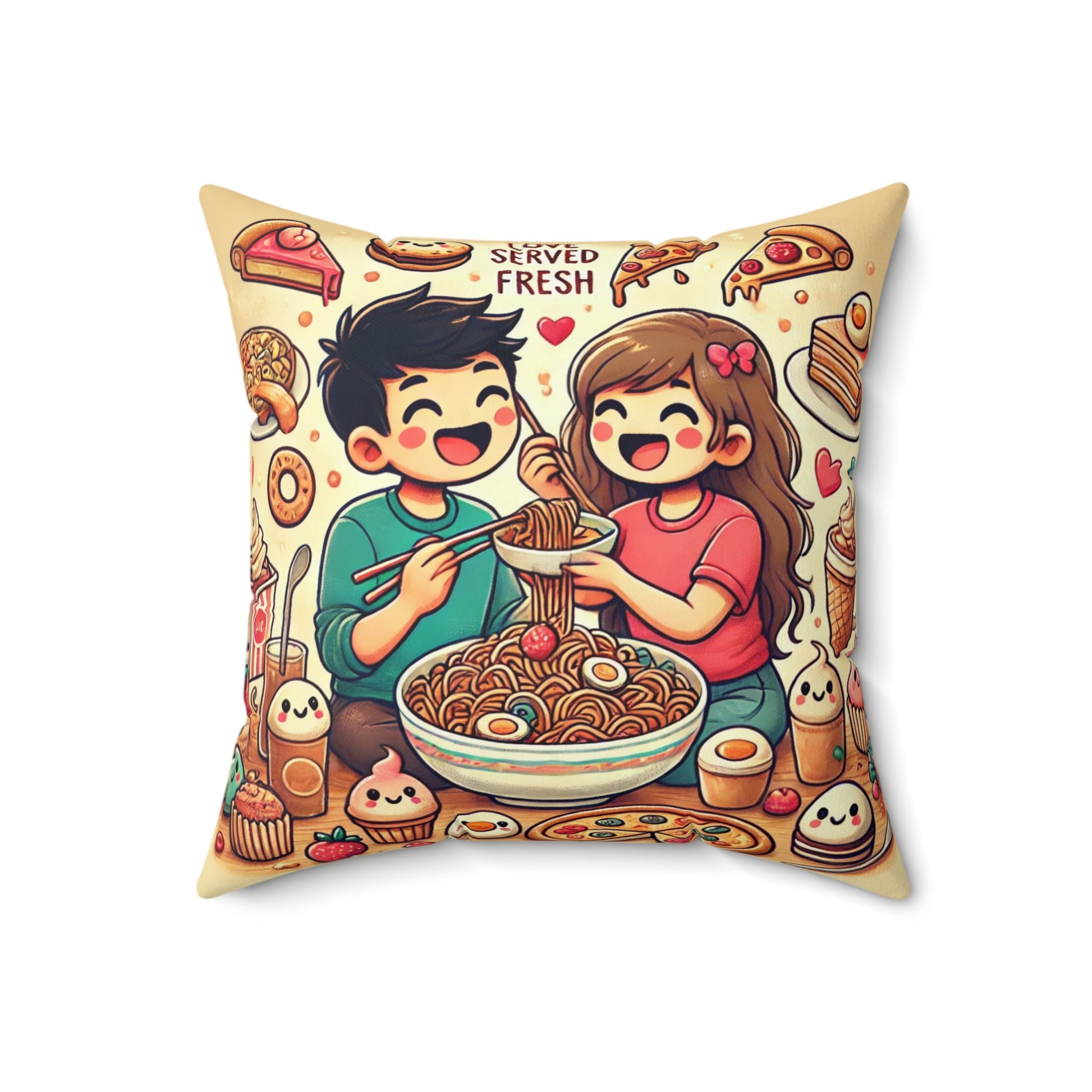 Cute Foodie Square Pillow – "Served Fresh" Design